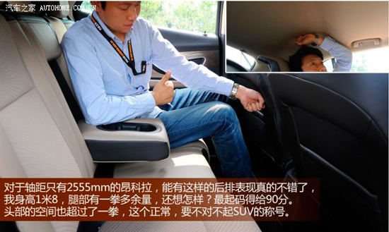 3/作为小型SUV,昂科拉的内部空间优秀,身高1米8的人坐进去无压力。(90分)