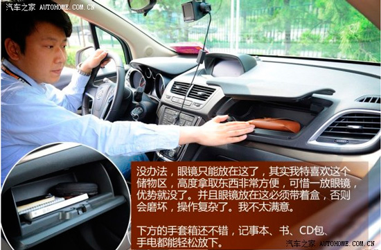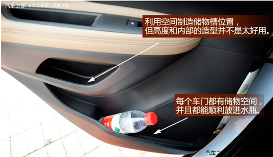 2/车内储物想的很周到,特别是四个车门都设计了两个储物空间;前排储物空间不少,但少部分空间没有利用好,比如眼镜没地放,需要占用其他的储物位置。(丰富性100分,实用性70分)
