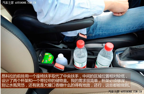 说到车内储物,我觉得昂科拉确实是挺用心的,四个车门都有储物槽,并且都能放水瓶;车门的中部也有储物区;再像方向盘左侧有放票据的、中控台上有放手机的、副驾驶正前方还设计了两个手套箱等等,其实真挺丰富的。感觉设计师尽力把能掏空的位置都设计出储物空间,就看每个人怎么利用了。