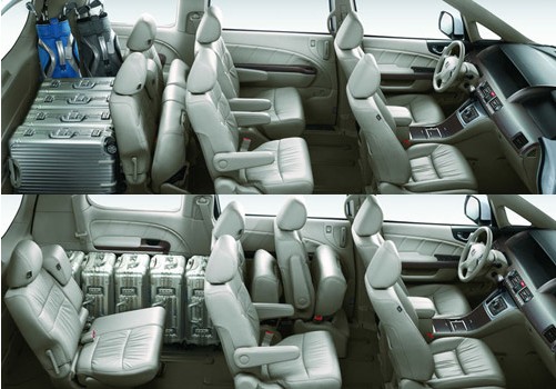 在小的储物空间和车内空间的自由组合度方面艾力绅也树立了高端MPV新的标杆。例如同级别MPV第三排座椅只能整体式放倒,装载行李相对有限,而艾力绅的座椅采用滑轨式设计,第三排座椅可以收起一直顶到第二排,第二排座椅同样可以收起前移,这样可以为后备箱倒出巨大的空间,而且如果遇到超长行李和乘客较多时,单排座椅还可以收起,既保证装载货物的能力又保证车辆的乘坐便利。