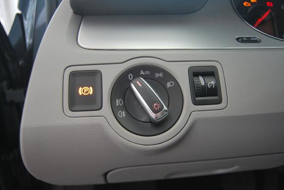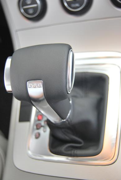 真皮换变速杆背部手心接触的部位镶嵌了一个漂亮的镀铬“DSG”铭牌,低调地向外界表明了它内在的尊贵,也是变化比较明显的细节体现。
