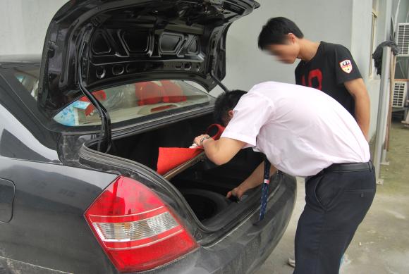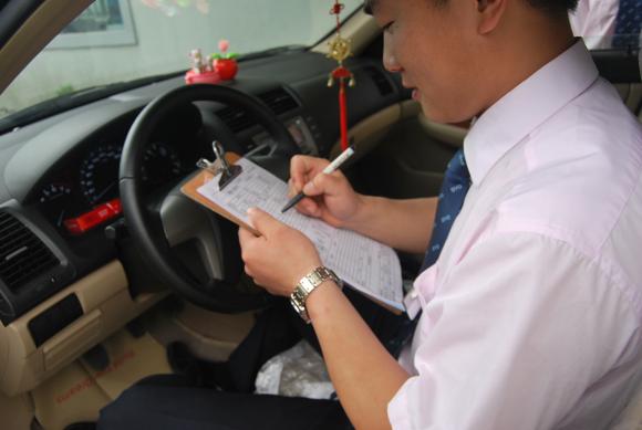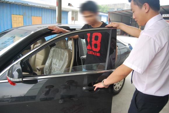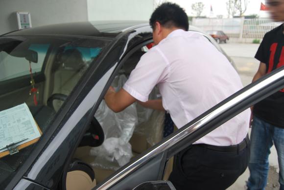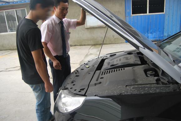 客户与服务顾问一起,对后备厢、车内贵重物品及发动机逐一登记。