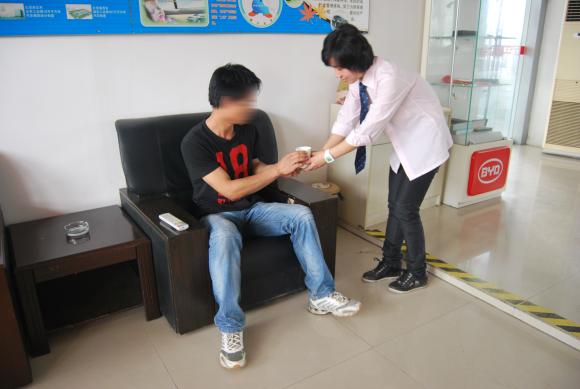 客户交接完维修保养工作后来到了客户休息室,服务人员亲切的沏茶递水。