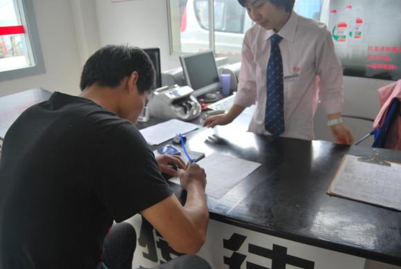 客户将行驶证与保养手册交于服务顾问,交流维修保养相关问题;服务顾问做好详细登记后,并让客户签字。
