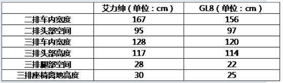 作为一款商用车型,车内空间无疑是决胜的重点,而第二排及第三排的用于乘坐的空间则更是重中之重,在这一环节的对比中,当然最客观的莫过于直接性的数据对比展示了。如上图实测数据所示,虽然GL8车身更为庞大,但凭借着日系车企对空间利用的一贯优势,艾力绅在保持车身紧凑,用以获得更良好的空气动力性及燃油经济性的同时,在实用空间上仍是远远领先于GL8. 在第二排车内空间方面,在头部空间相差无几的情况下,艾力绅车内宽度足以领先GL8 11cm,为MPV车型最重要的第二排乘客提供了无与伦比的车内活动空间;而第三排空间,艾力绅更是形成了压倒性的优势,无论是车内宽度、头部高度、三排腿部空间还是三排座椅离地高度,均大幅超过了GL8!