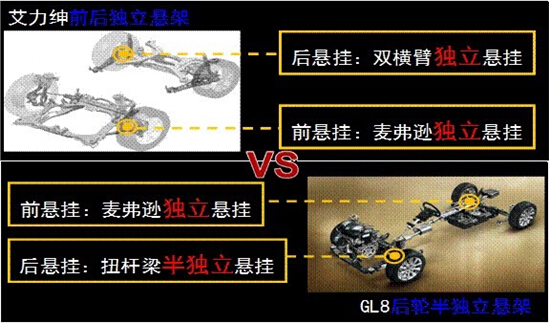 数据之外的空间表现方面,艾力绅仍占据着绝对优势。相对GL8只照顾第二排乘员空间的传统MPV设计,艾力绅以“宽享全座舱”的理念打造全三排乘坐空间,对每一位乘客的极致照顾让其商务性更加突出;此外,在空间的灵动性上也是GL8所无法比拟的:对比GL8第三排座椅无法移动,艾力绅则第二、三排都能够轻松折叠及移动,带来多种空间组合大大提高了使用便利性 舒适性对比:艾力绅独立悬挂PK GL8半独立悬挂
