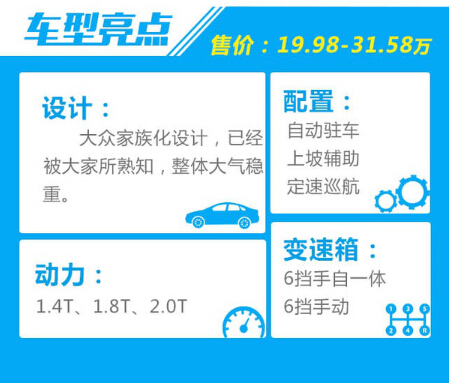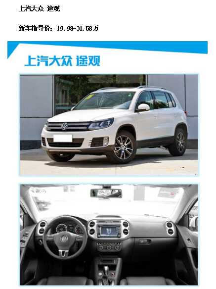 优点:黄金动力组合、品质好 缺点:内饰廉价 点评:途观一直以来被冠以“神车”之称,在销量上一直很好,自上市以来就以沉稳的外观、出色的品质以及品牌影响力吸引了很大一部分消费者,而途观也确实没让大家失望,教授可以这么跟大家说,途观除了价格相对高点之外,其他方面都不是问题。