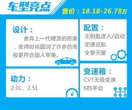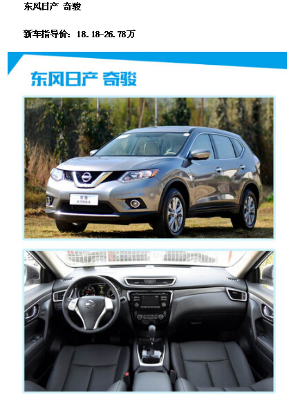 优点:油耗低、舒适性好 缺点:隔音略差 点评:奇骏自上市以来,盖过了日系三大品牌其它同级别车型,销量一直很稳定,如果按外观和数据来看,奇骏并没有什么出奇的地方,但就是这非常全面,无明显缺点的特征比较符合国人的消费观念。当然,舒适、省油、耐用等等奇骏都很好地诠释了。