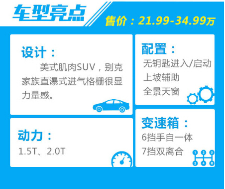 优点:配置丰富、内饰豪华 缺点:储物空间一般 点评:昂科威这款车教授之前也有提到过,是性价比很突出的一辆车,而且各方面都达到一个不错的高度,从昂科威反出口至北美市场销售就能看出这款车的实力。当然,昂科威还有进步的空间,比如人性化方面。