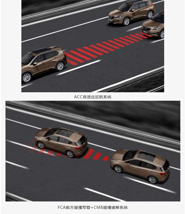 别克昂科威搭载了全面的智慧安全科技,包括ACC自适应巡航系统、LKA车道保持系统、LDW车道偏离预警系统、SBZA侧盲区预警系统、FDI前车距离提示系统、FCA前碰撞预警系统、CMB碰撞缓解系统、RCTA泊车预警系统及HBA智能大灯系统等9大系统,这使其在IIHS 2016测试中额外赢得了4分科技加分。