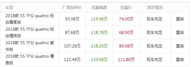 2019年01月23日 - 2019年02月21日, 张家港德和奥迪置换奥迪A8L优惠高达19.98万元,感兴趣的朋友可以到店咨询购买,具体优惠信息请见下表: