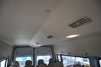前排左右挡阳板,防眩目内后视镜,顶置空调出风口、照明灯,另外还有便捷化设计的置物勾架。