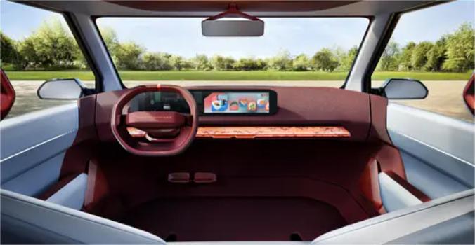 内饰部分,起亚EV2概念车风格简洁,搭配不同配色凸显层次感。具体来看,新车中控台上方带有一体式屏幕,横辐式方向盘造型独特。新车采用对开式车门和无B柱设计,第一排座椅座垫为一体式贯通设计,同时第二排座椅可折叠,有助于让前排座椅尽可能向后滑动。