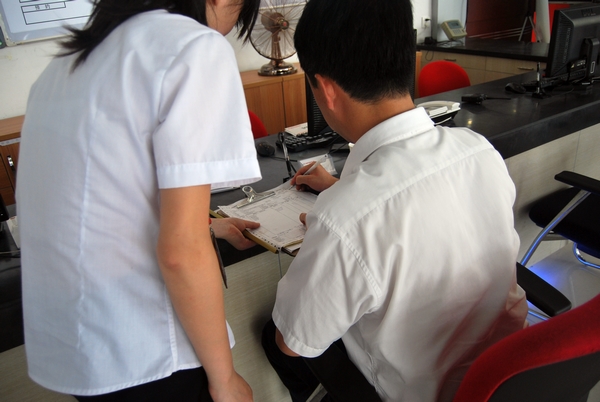 服务顾问与客户一起对车辆进行检查,一一核对后,客户签字确认。