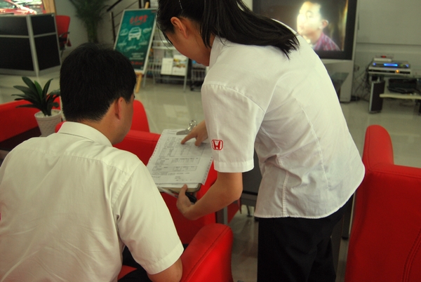 远远看到客户的到来,服务顾问随即上将接待,与客户进行接洽。