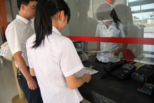 保养项目核对后,服务顾问带领客户来到结算室,进行保养费用结算。