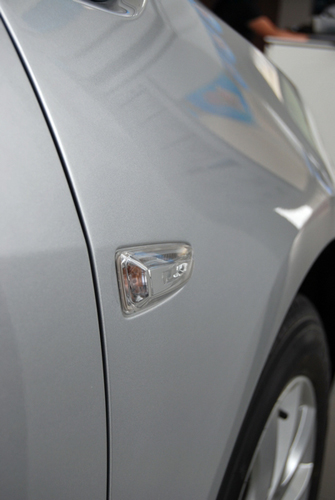 侧身转向灯很精致,蝶式变束无骨雨刷设计很精美,在遇暴雨恶劣天气时为你提供更好的视野。
