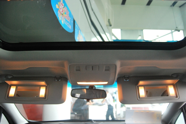 防眩目内后视镜、左右遮阳板都附有化妆镜、一键式智能防夹电动天窗,完美搭配尊贵气质可见一斑。