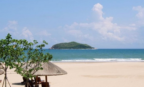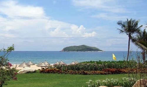 典故:石梅湾位于海南省万宁县东南部,距县城30公里。东经110.5度,北纬18.5度,以石梅湾为中心30平方公里的范围分布有东山岭、兴隆温泉、太阳河、神州半岛、大洲岛、日月湾、杨梅湾等几个已开发和待开发的旅游区。石梅湾是一片原始的南国景观,三面环山,一面向海,山形秀美,石梅湾长长的海滩两端,各向海中伸出两座峰峦石海湾秀美风光。湾内植被繁茂,有大片椰林、橡胶等热带作物,椰树槟榔,相映成趣。白沙碧海,蓝天流云,自成画卷,更有青梅翠带,溪流湖泊,秀屿奇石,细浪柔沙,美不胜收。港湾平时风平浪静,滨海沙滩长约7公里,近百米内水深不过3米。这里四季无冬,阳光充足,空气清新,适合观兴游览,长假疗养;这里水清沙纯,风平浪静,适合开发成一个以世界热带“海洋文化”为主题的海上游乐、旅游度假区。对面三角区不远处有一秀丽的岛叫加井岛。岛边浪花簇拥,白鸥点点;岛上奇花异草,岩石千姿百态。沙滩上天然生长着世界上仅存面积最大的珍稀林木——青皮林(1.4万亩),在清朝就受到保护和重视,光绪27年的“奉官立禁”碑,现尚立于滨海沙滩上。这里已被列为国家级自然保护区。描述:
