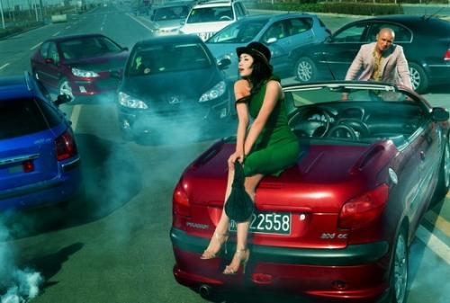 爱戴在标致Coupe 407上做着各式妖艳的pose,时而性感冷艳,时而柔媚乖巧,让男人生出几分怜惜。“像猫一样的女人”,一暼之间,这恐怕是此刻最能形容爱戴的词汇了。
