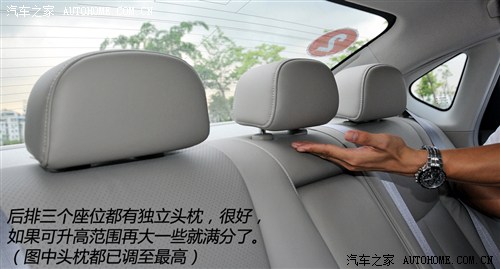 图中体验者身高1.79米,调整好坐姿后,前排头部空间三指,后排头部空间两指,腿部空间两拳。