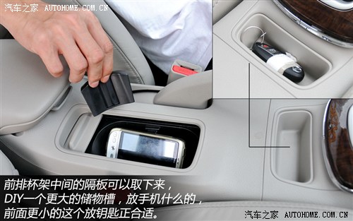 储物空间之前文章也介绍的足够多,这里补充两个细节。前排杯架中间的隔板是可以取下来的,变成一个更大的储物槽,手机钱包都可以丢进去;手套箱容积不错,深度也足够竖着放一瓶矿泉水,开口偏低,拿最里面的东西得探身。