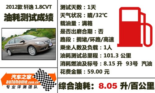 最后消耗93号燃油8.15升,综合油耗为8.05升/百公里。在这么拥堵的路况下能有这样的表现,可以彻底放心了。除了发动机本身的原因外,带有副变速装置的全新一代CVT变速箱也功不可没,它把发动机转速控制的非常低,比如在市区里60km/h匀速前进,转速只有1100rpm左右,即便双离合变速箱也很难做到这点。