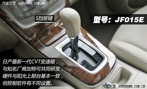 变速箱型号JF015E,硬件上与阳光用的那台基本一致,由加特可提供,都属于日产全新一代CVT变速箱,控制软件会有调整。它采用了一套包括两个挡位的副变速机构,在保证小型化的同时扩大了变速比范围。