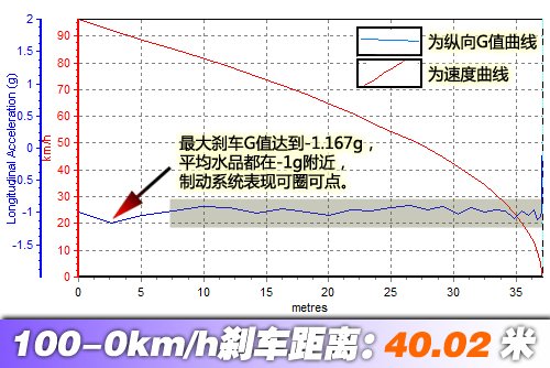 制动系统表现让我很满意,印象最深刻的是整套系统的发挥特别稳定,十组测试当中,最好成绩与最差成绩的差值仅有11厘米,跟你的苹果手机一样长,目前同级别里能做到这份上的确实凤毛麟角。最终成绩40.02米,非常优秀。